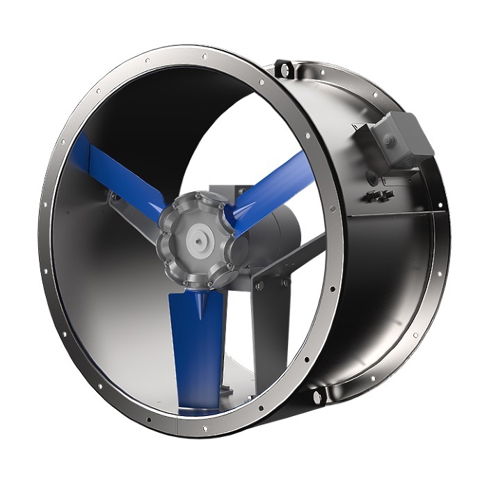 осевой вентилятор, максимальный расход воздуха 85 440 куб. м/ч, частота вращения 1 500 1/мин, максимальный располагаемый напор 715 Па, присоединительный размер 1120 мм, материал корпуса: сталь, монтаж: в воздуховод, степень защиты: IPX4